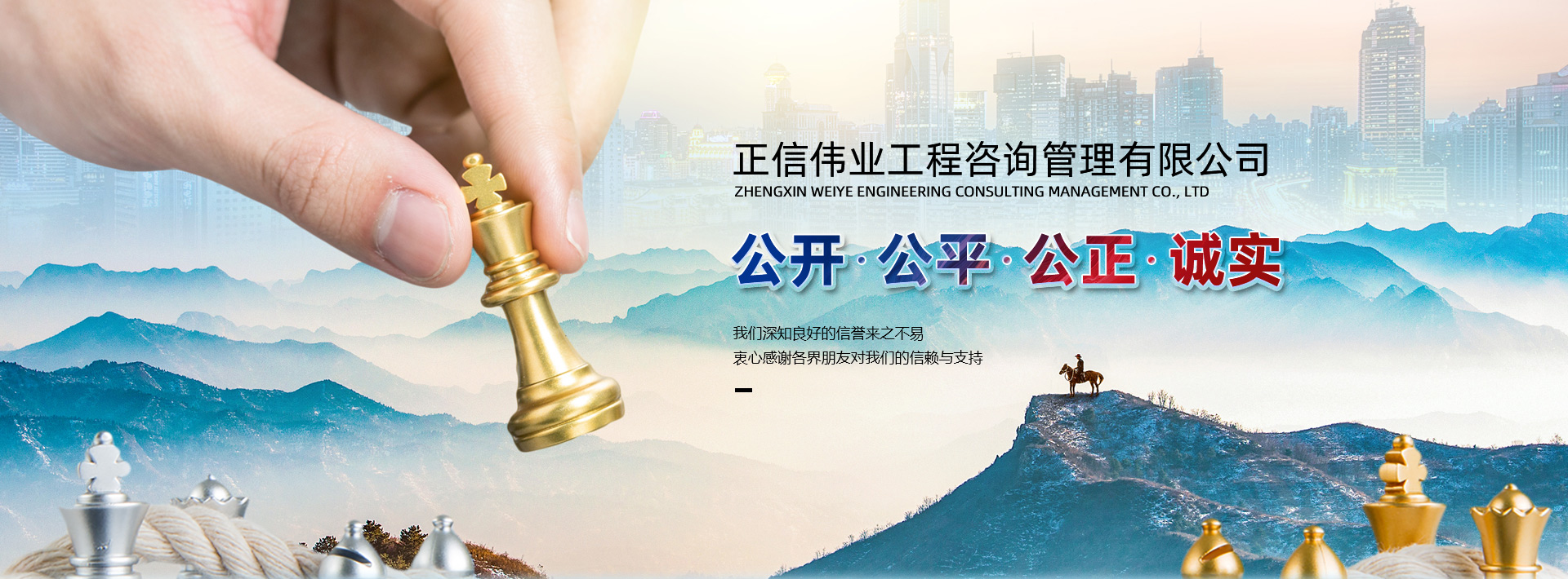 2002年9月,正信偉業工程咨詢管理有限公司成立(原名正信偉業招標集團有限公司),注冊資金 5000 萬元。經過十八年的發展,正信偉業成為具有雄厚的經濟、技術和人才實力,國內優秀的的招標采購咨詢機構之一。公司可在全國范圍內承擔各類建筑工程、土木工程、機電工程等的招標代理、工程造價咨詢、工程監理、工程項目管理等業務,可以開展項目前期決策階段的工程咨詢業務,可以為各級地方政府提供 PPP 項目咨詢等服務。